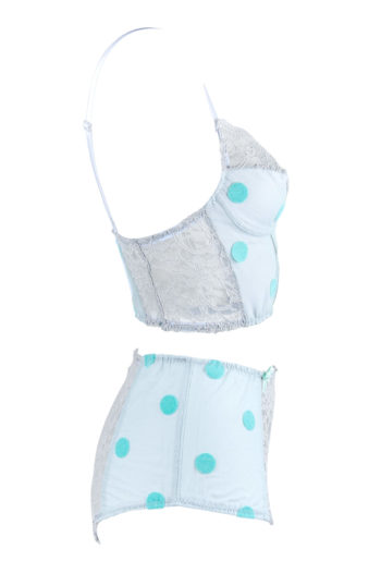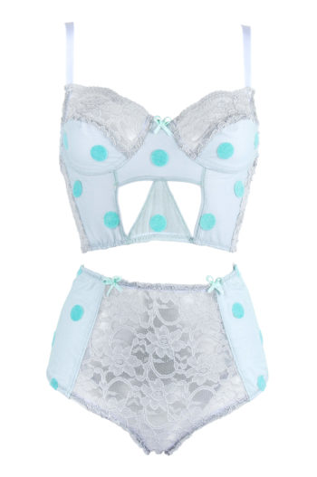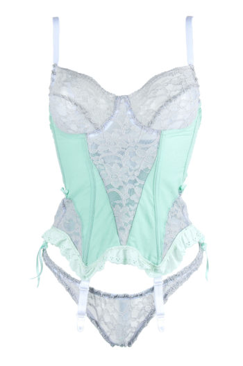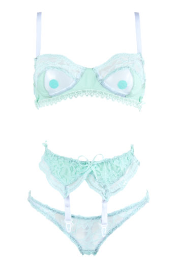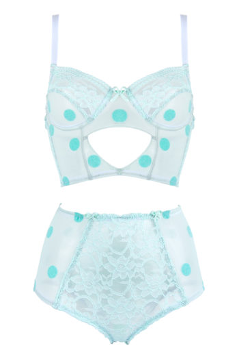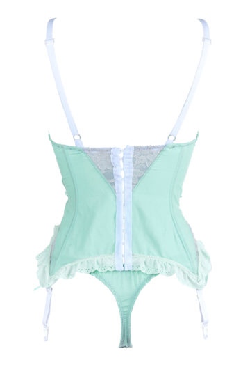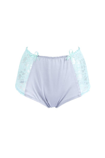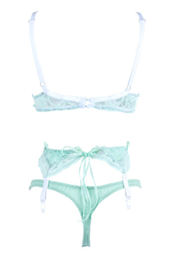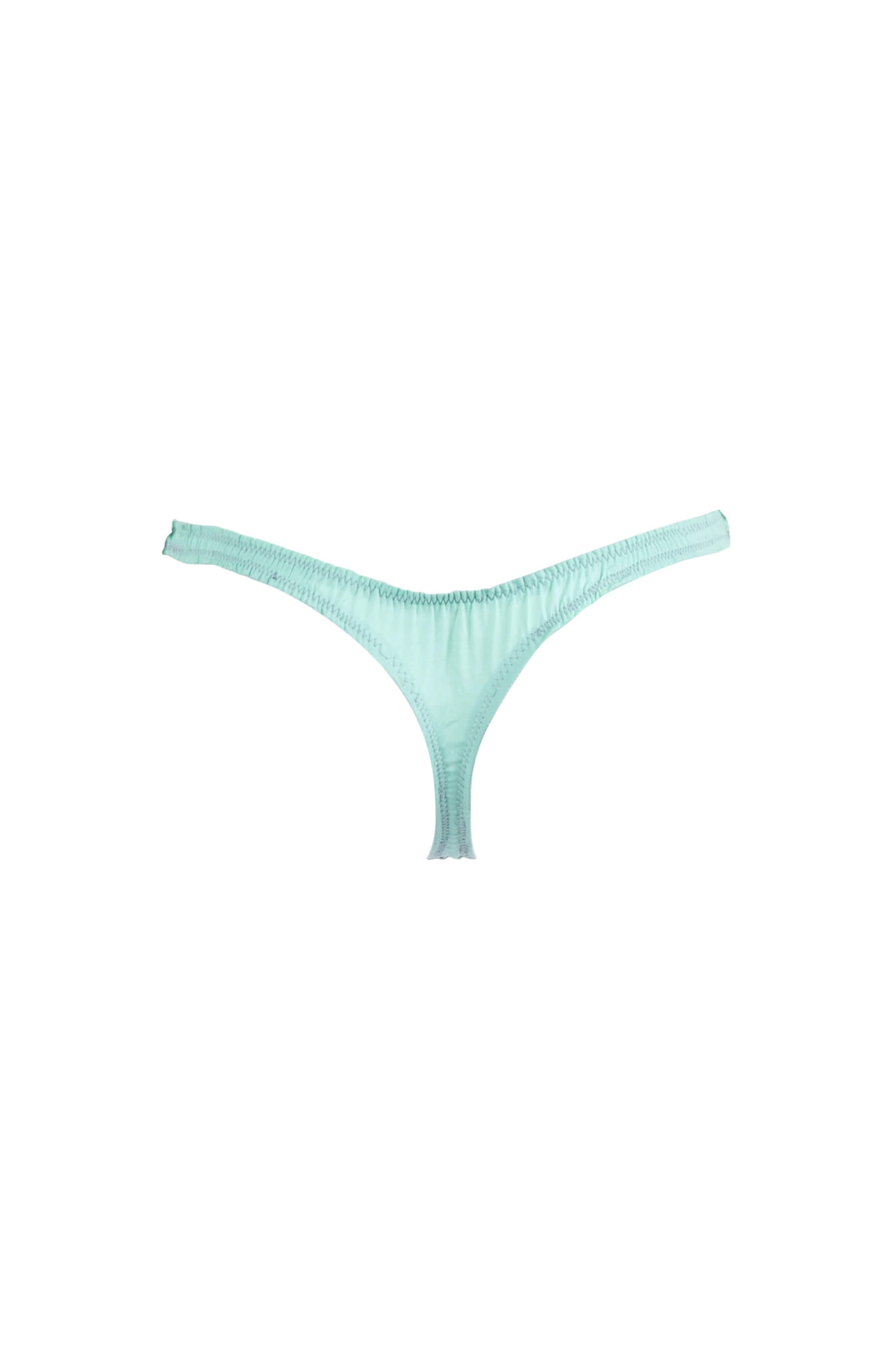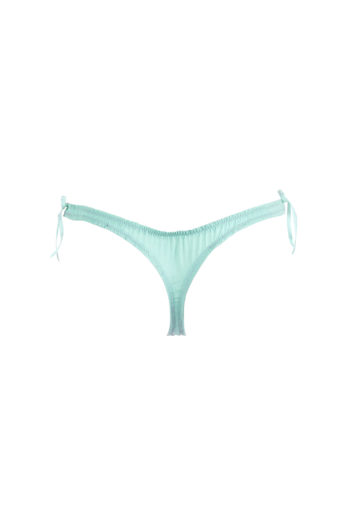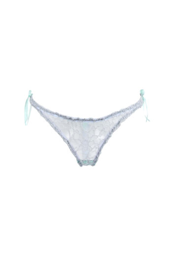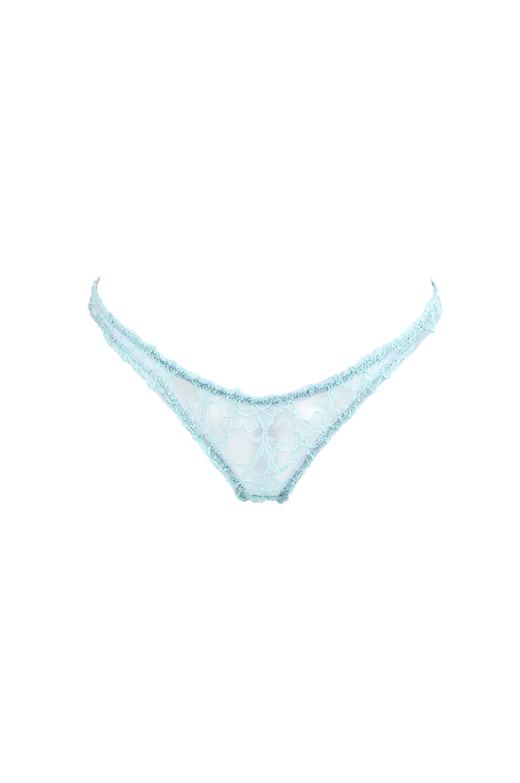 Ce string est fait de dentelle et de coton vert d’eau.