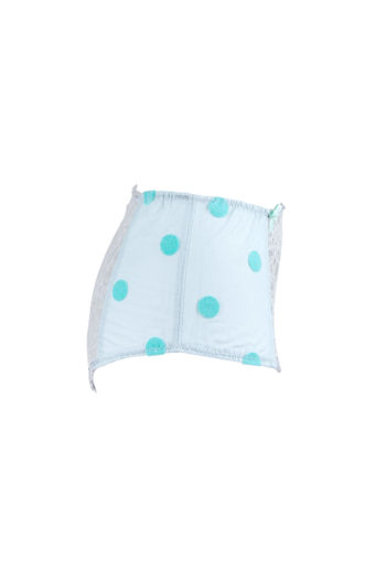 Cette guêpière, avec armatures et ses côtés de transparence, ses petits nœuds pailletés, a tout pour vous plaire. Elle est faite de dentelle grise et de coton vert d’eau. Elle mettra tous vos atouts en valeur.